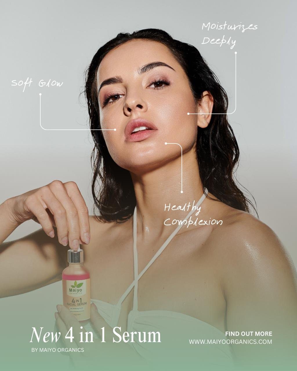 Upgrade your skincare with 4-in-1 Serum! This powerful formula tackles multiple concerns—dryness, dullness, aging, & uneven tone—all at once. Dermatologist-tested & packed with nourishing ingredients, it delivers instant hydration & long-term glow. Get salon-like results at home without the high price tag! ✨ Small bottle, BIG transformation—set a new beauty standard with MaiyoOrganics