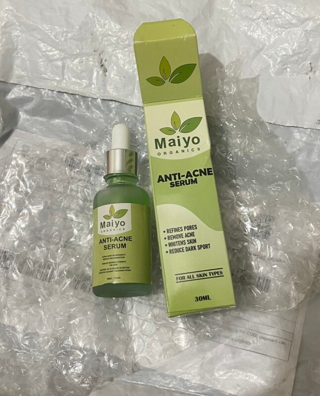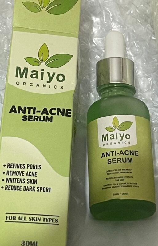 MaiyOrganics Anti-Acne Serum—a potent yet gentle formula crafted to combat breakouts, reduce inflammation, and prevent future acne. Infused with natural antibacterial and soothing ingredients like tea tree oil, niacinamide, and aloe vera, this serum penetrates deep into pores to eliminate acne-causing bacteria while calming irritated skin. Free from harsh chemicals, it’s perfect for oily, combination, and acne-prone skin, helping you achieve a clearer, smoother, and blemish-free complexion.